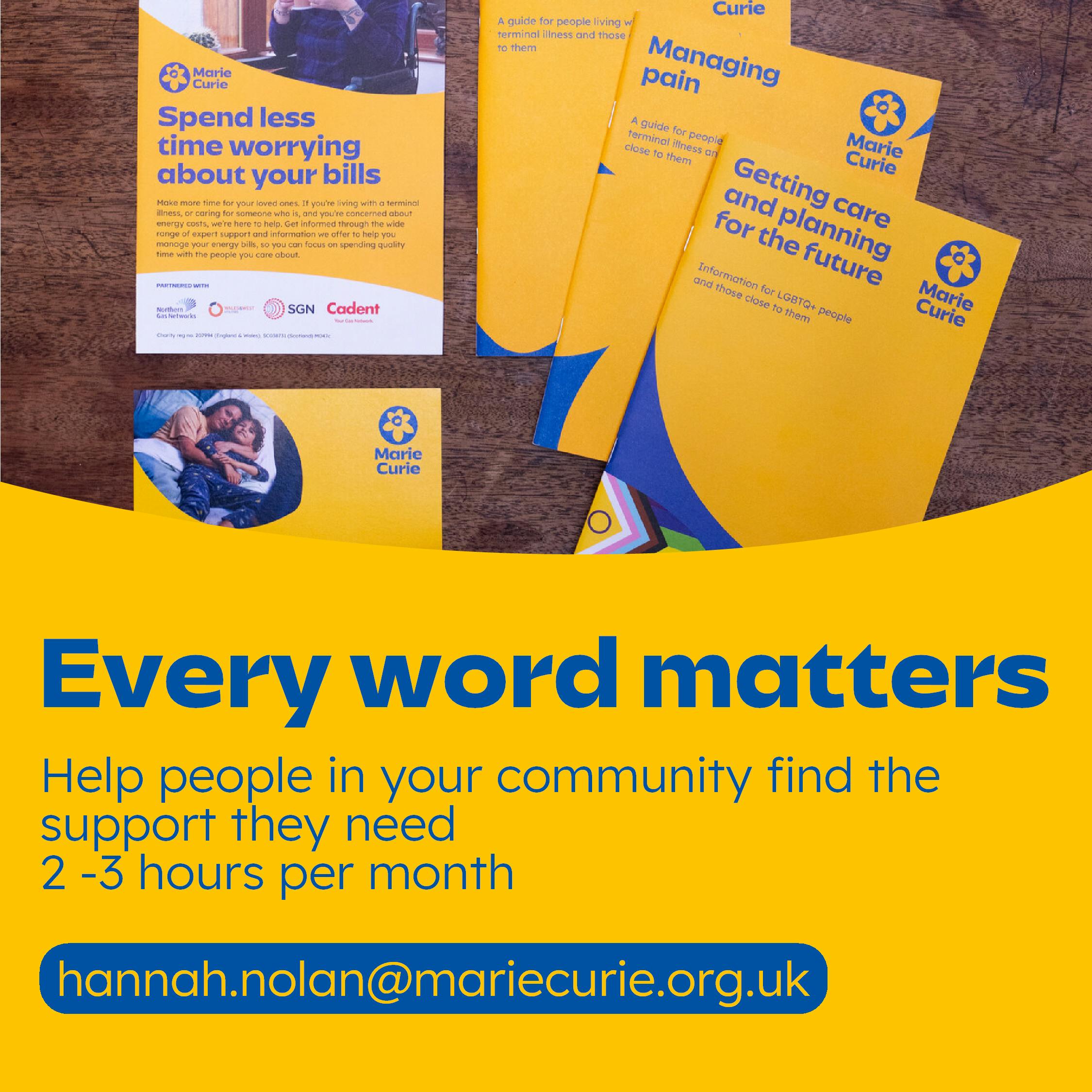 Play a key role in raising awareness of Marie Curie’s services available for people in your community .