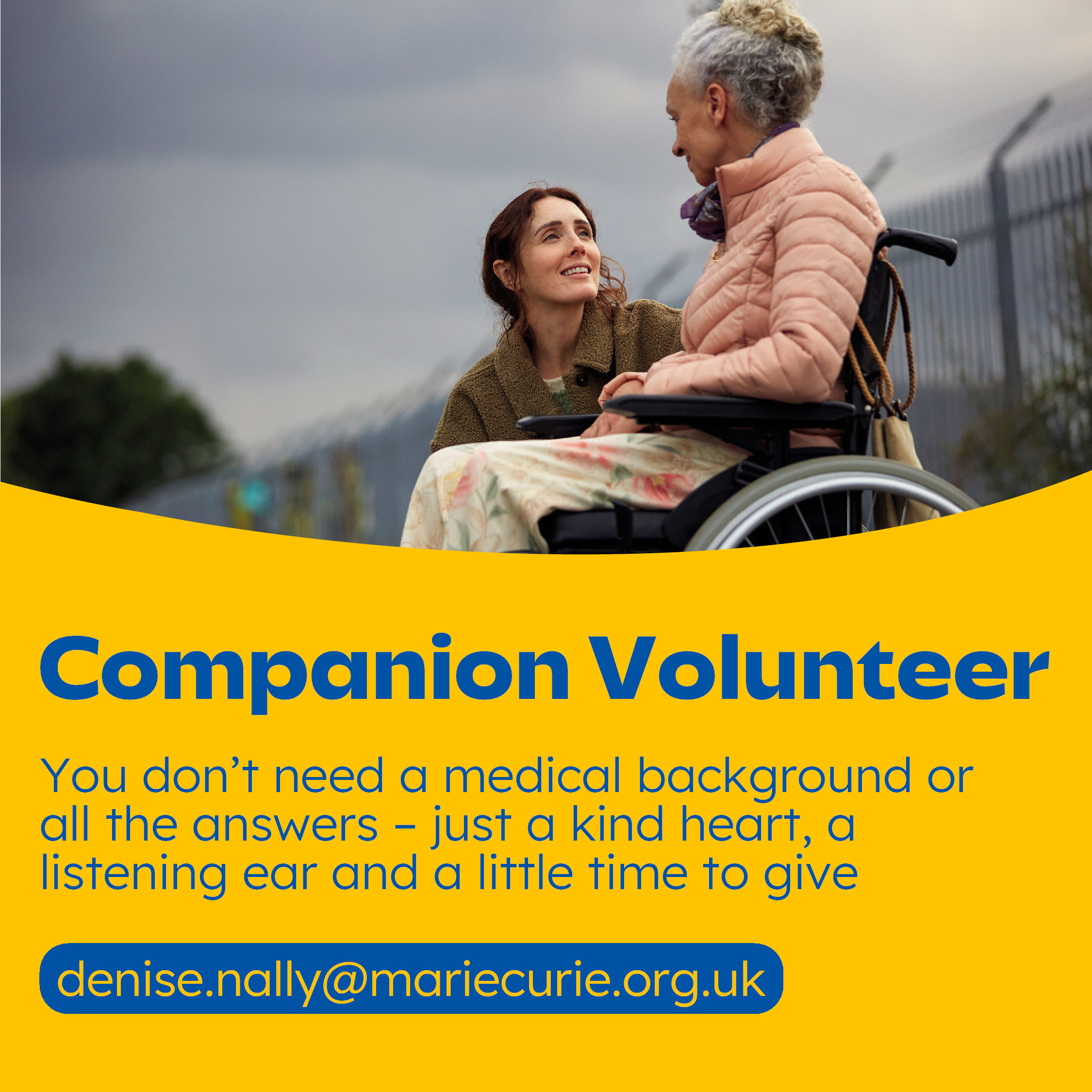 You don’t need a medical background or all the answers – just a kind heart, a listening ear and a little time. Be there when it matters.